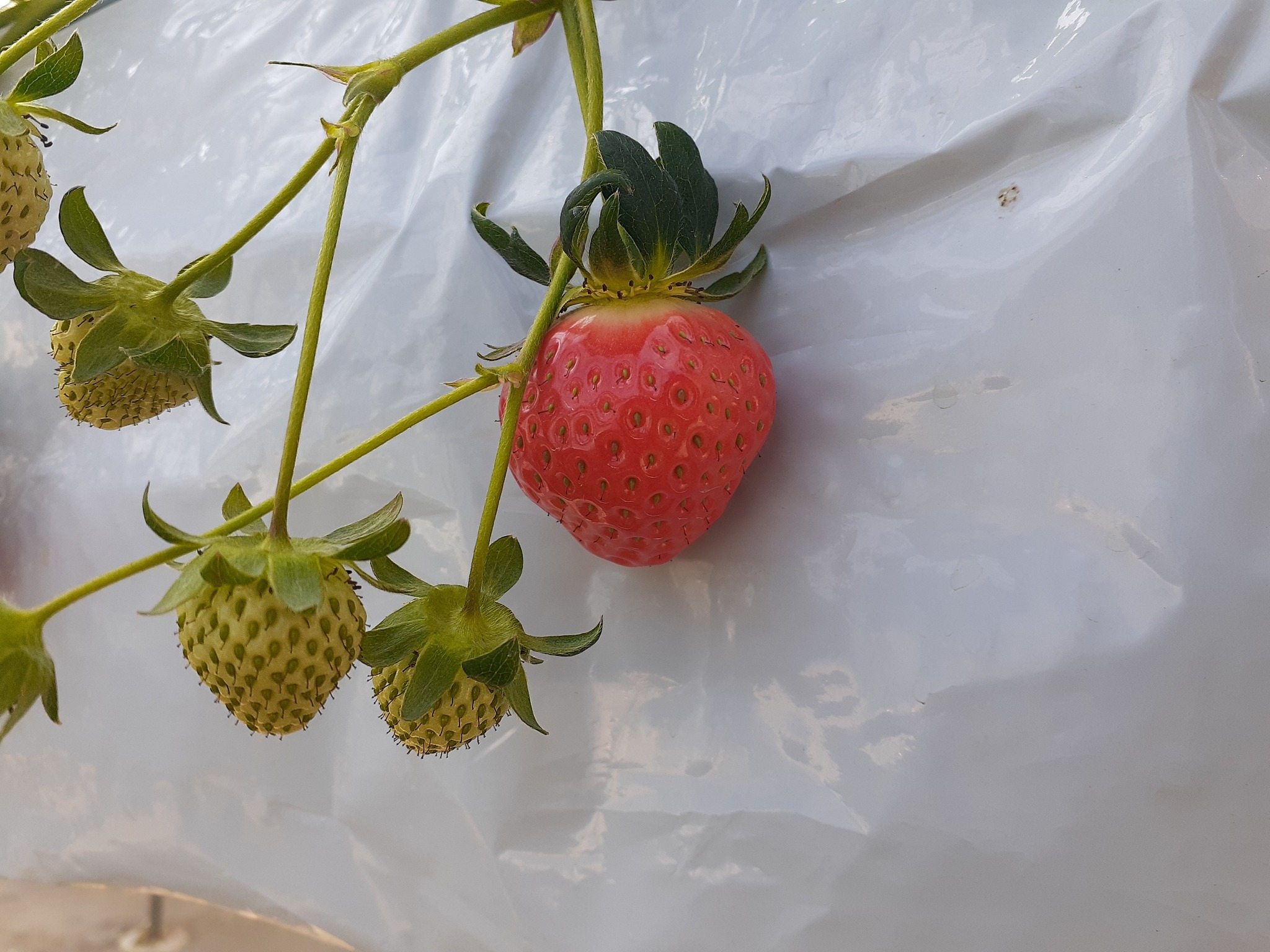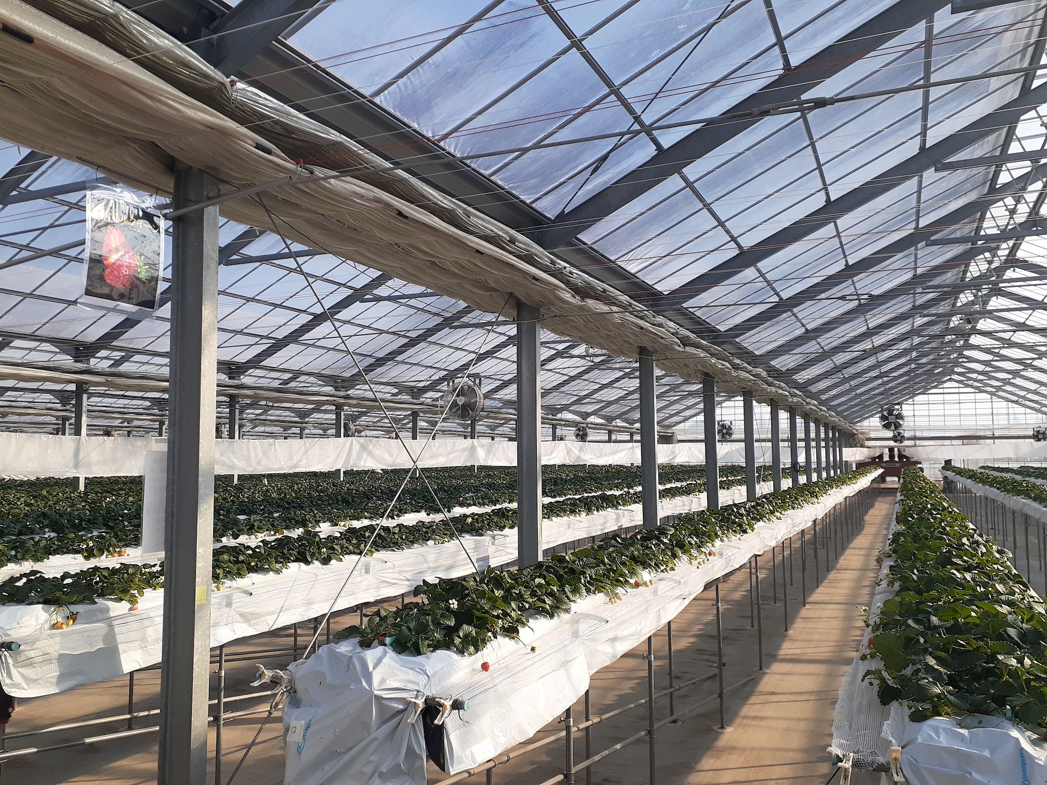 ハウスの中は、土耕栽培ではないので、とてもいちごが取りやすいです。