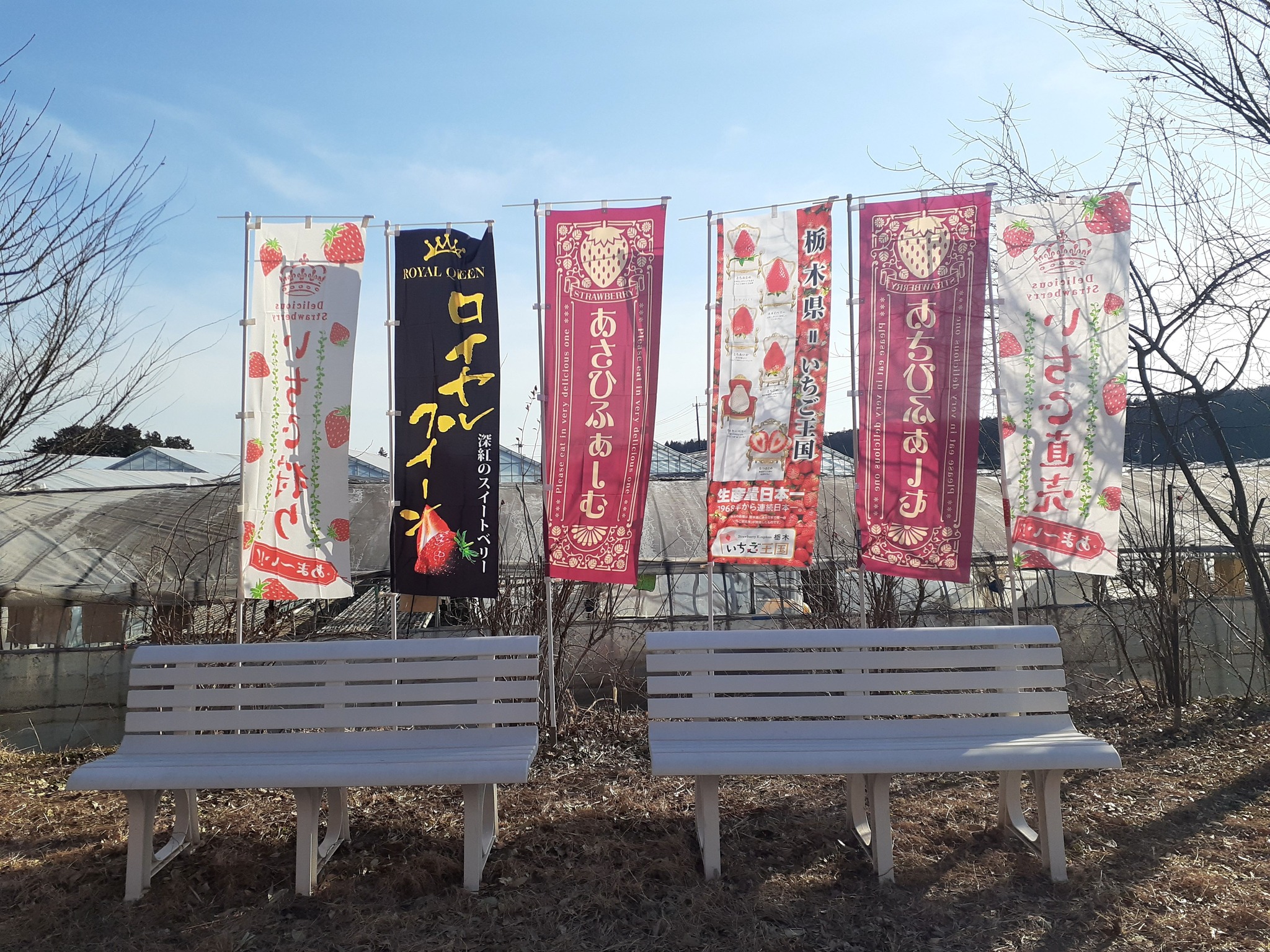 品種は、スカイベリー、とちあいか、ロイヤルクイーン、恋みのり、紅ほっぺなどが楽しめます。